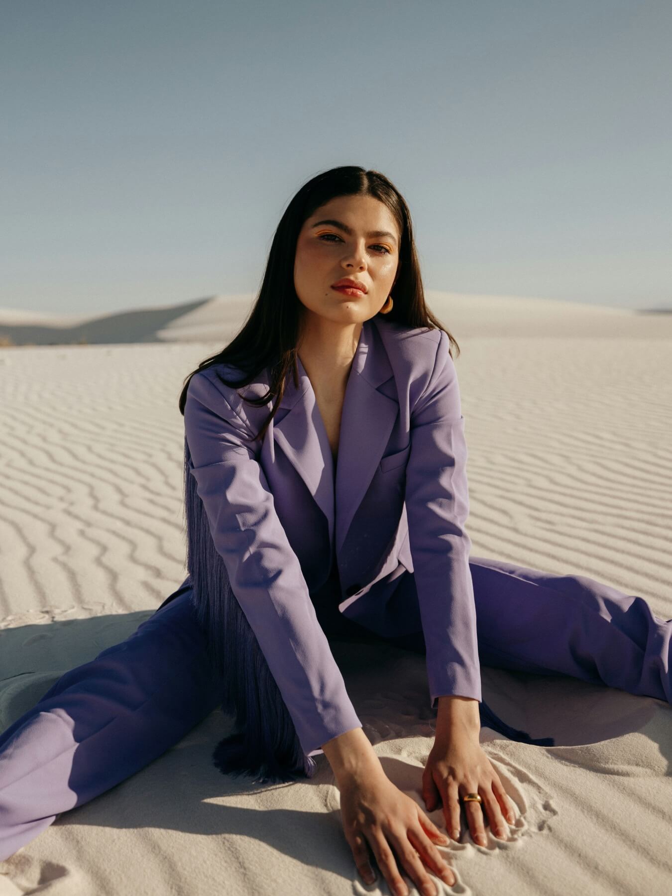 Jacket made of 100% wool. Long sleeves. Sleeves-fringe detail.
